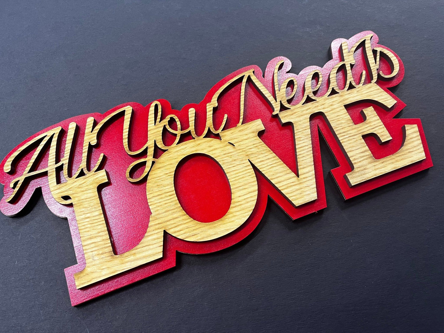 All You Need is Love. Love is all you need. This beautifully handmade sign is cut from oak with a natural finish. The background is painted red (other colors available upon request). The perfect addition to your Valentine's Décor.