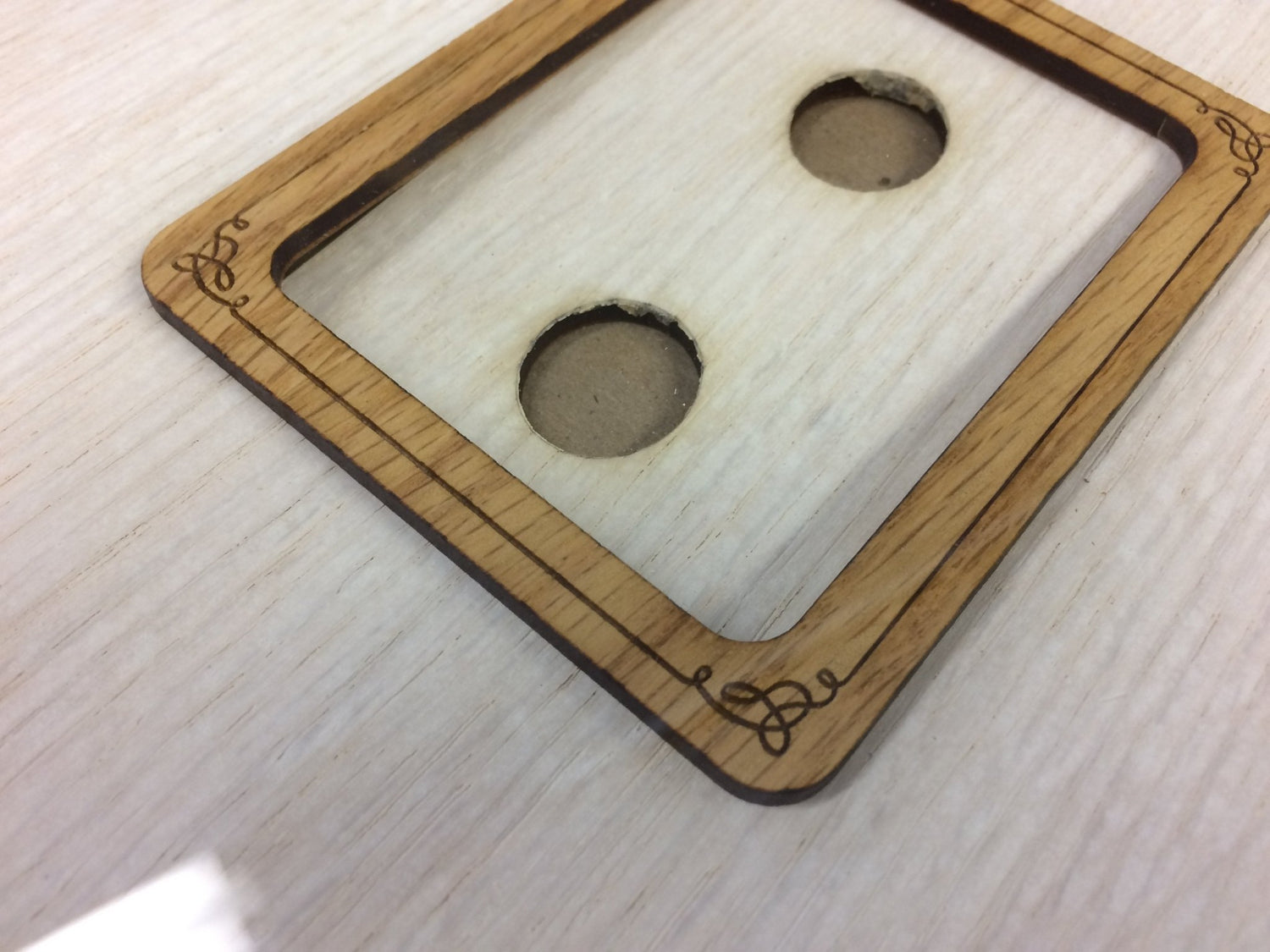 Their names and date are engraved at the top with the year they are celebrating and a verse or saying at the bottom. Includes: Personalized Frame, hearts, 4 engraved hearts, and pen. Hearts are 1.5"x1.5" made from Alder. Frame and accents are made from Oak. There are 2 holes on the top edge of the frame for guests to drop their signed heart into the frame.