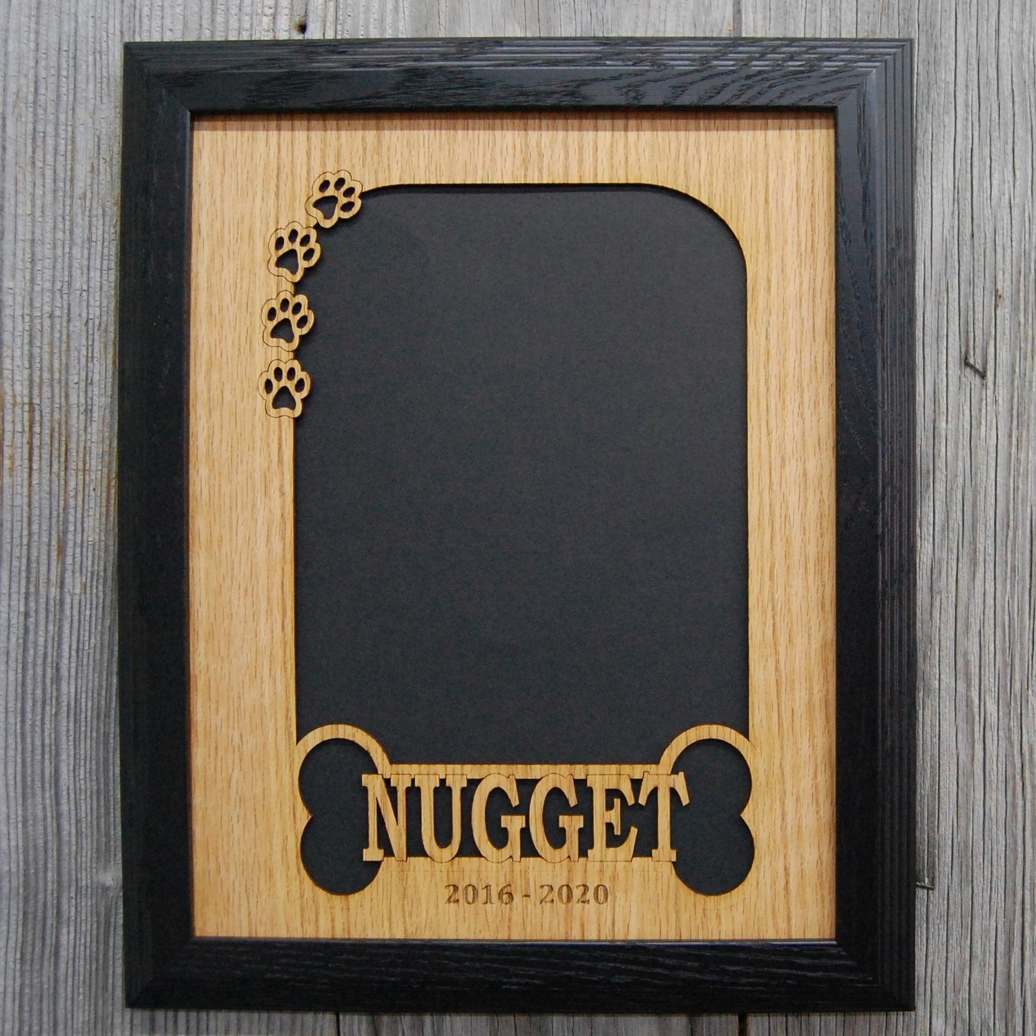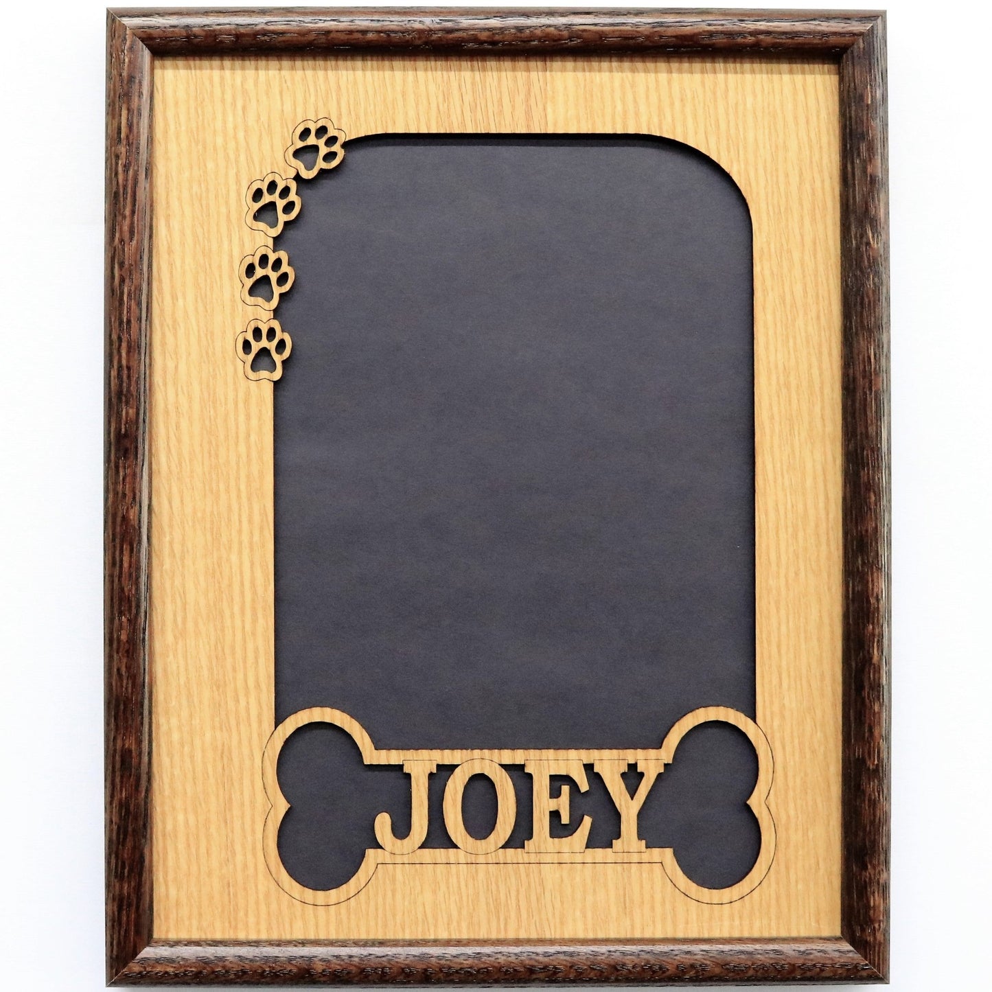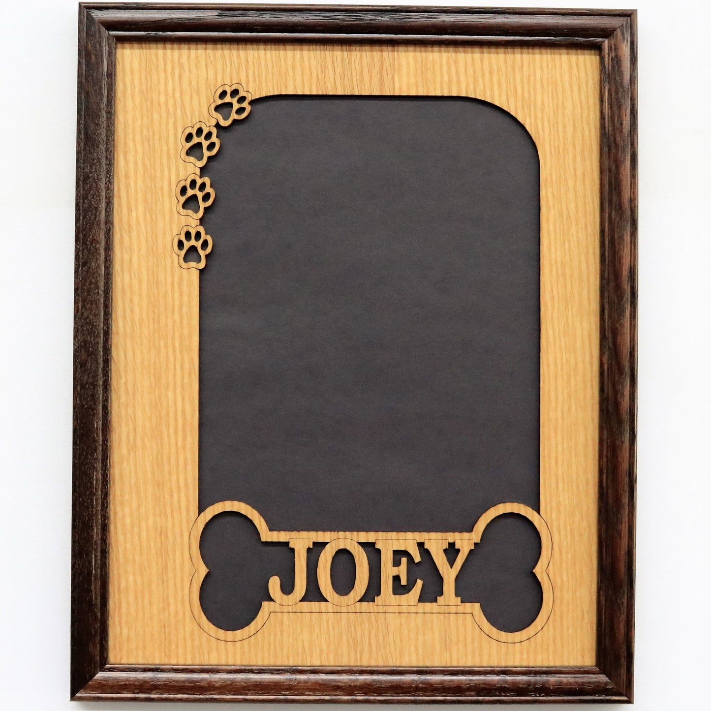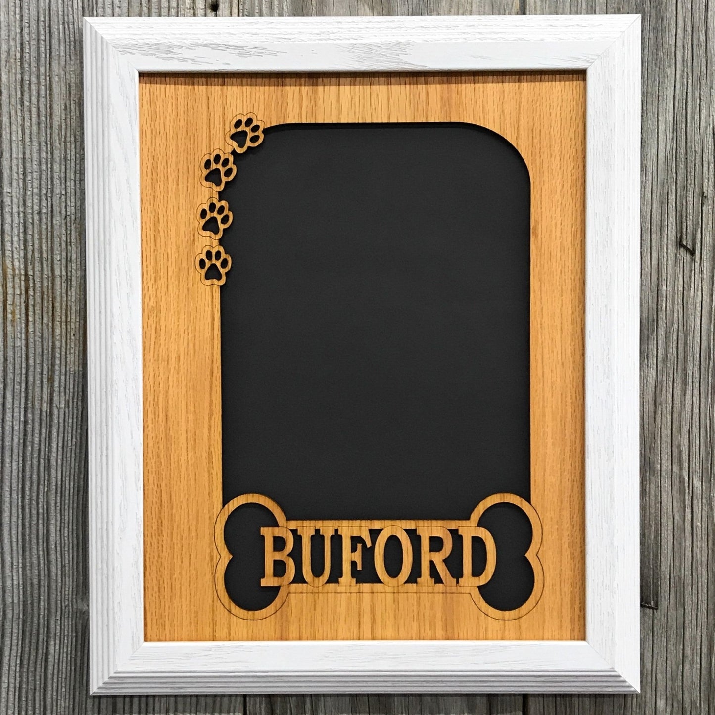 Show off your favorite pooch in this beautifully laser engraved Dog Bone & Paws Picture Frame. It features a cut out bone with your dog's name and 4 cut out paw prints.