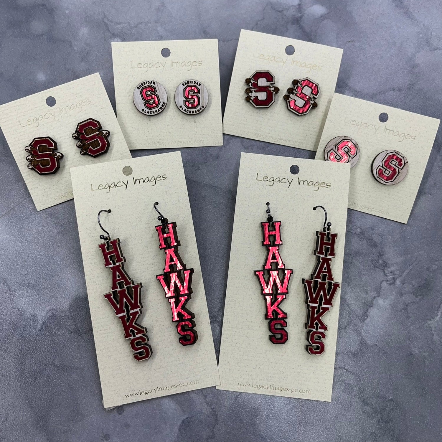Show off your school spirit with the Sheridan Blackhawks Earrings!